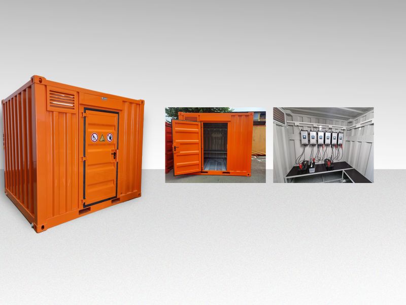 Schutz und sichere Lagerung sowie Spezialcontainer für das Lagern und Laden von Batterien